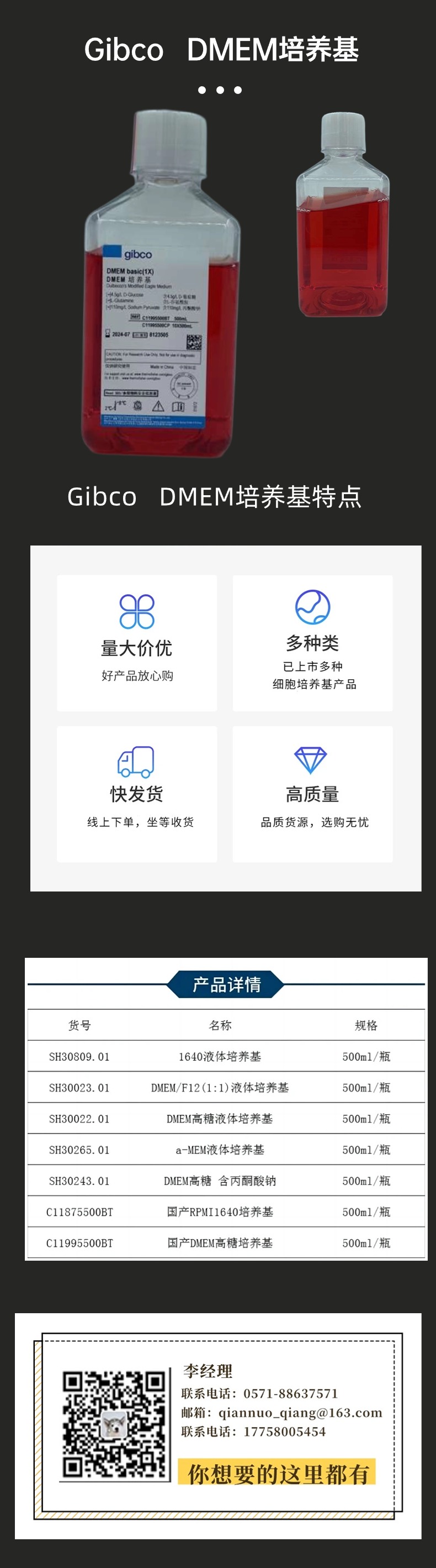 多樣性: Gibco 培養基系列涵蓋了各種細胞類型和應用場景,包括哺乳動物細胞、懸浮細胞、神經細胞、腫瘤細胞等。無論是傳統的培養基,還是針對特定細胞類型的定制培養基,Gibco 都能提供合適的產品。